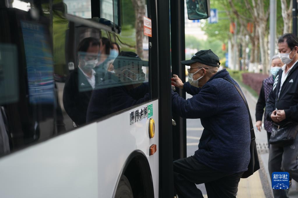 4月19日,“下班”后,沈燮元乘坐公交车回家。