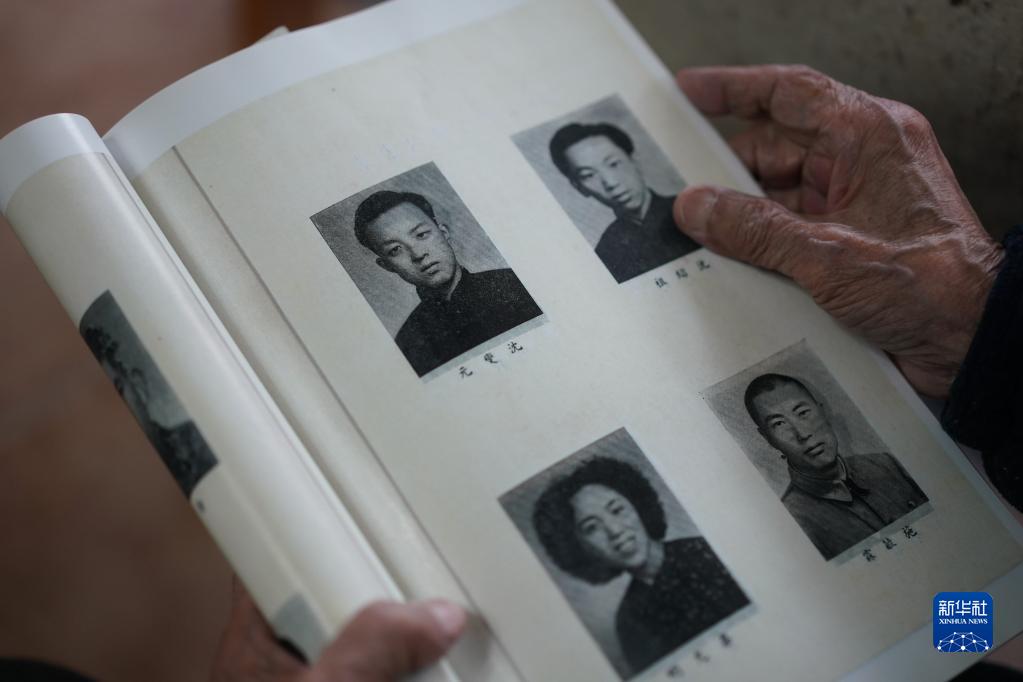 4月19日,沈燮元在家中翻看自己年轻时的照片(左上)。