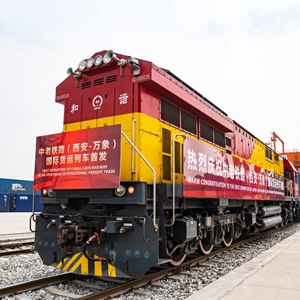当日,陕西西安开行首趟中老铁路国际货运列车。此趟中老铁路(西安—万象)国际货运列车主要运输的是一批纺织品。列车从西安国际港站驶出,经云南磨憨口岸出境,预计5天左右抵达老挝万象。