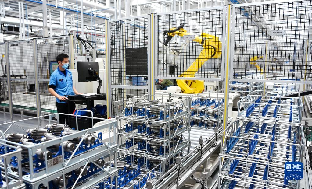 4月21日拍摄的法士特西安高智新公司变速器零件数字化生产线生产现场。