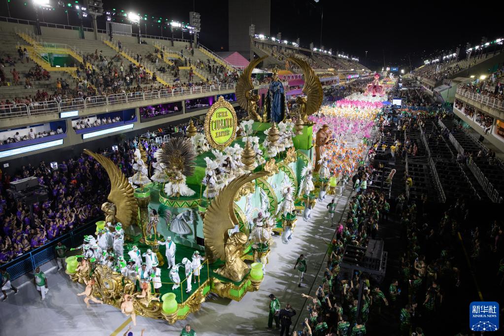 这是4月20日在巴西里约热内卢桑巴大道拍摄的花车。