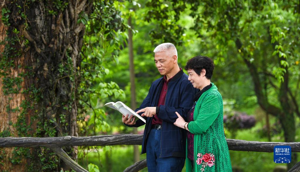 4月23日,在湖南省常宁市西岭镇,两位老人在阅读图书。
