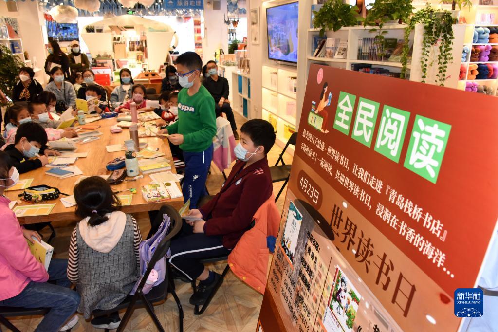4月23日,小读者在青岛栈桥书店举行的公益读书会上分享图书。
