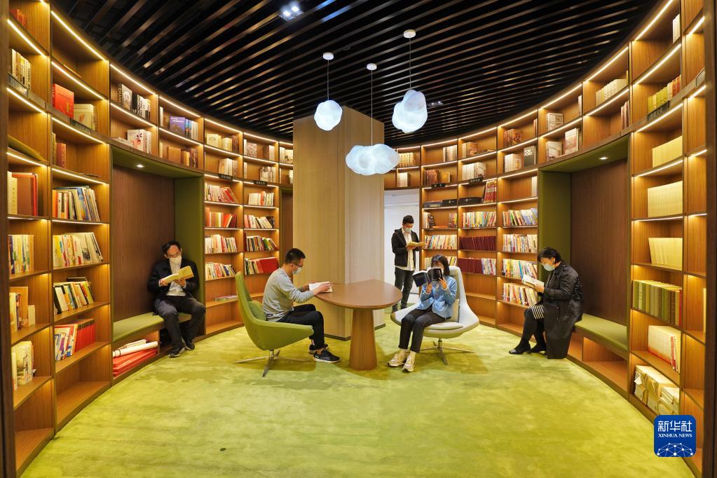 4月23日,在位于山东烟台的中国航天科技集团五院,科研人员利用周末时间在职工书屋读书。