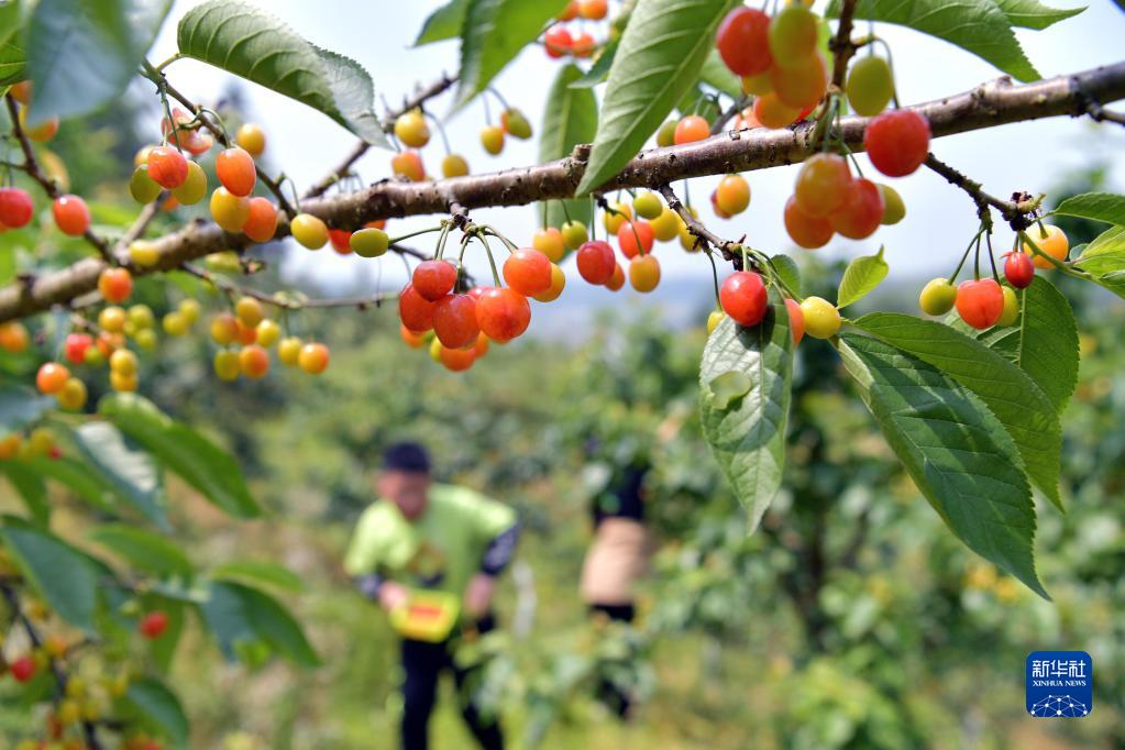 近日,湖北省恩施土家族苗族自治州宣恩县李家河镇金陵寨村引种的樱桃进入成熟期,吸引众多游客前往采摘。