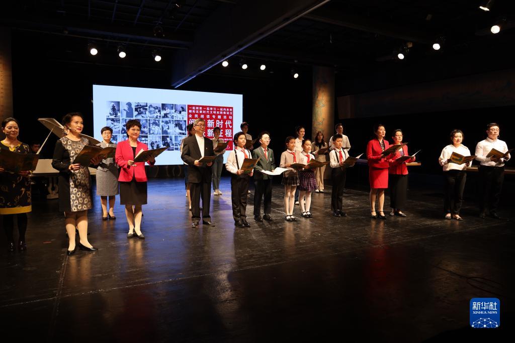 4月23日,市民在主题活动现场朗诵。