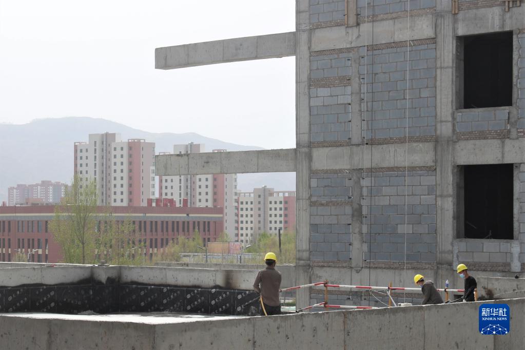 4月23日,工人在西宁市城北区的中建三局青海卫生职业技术学院新校区项目建设现场施工。