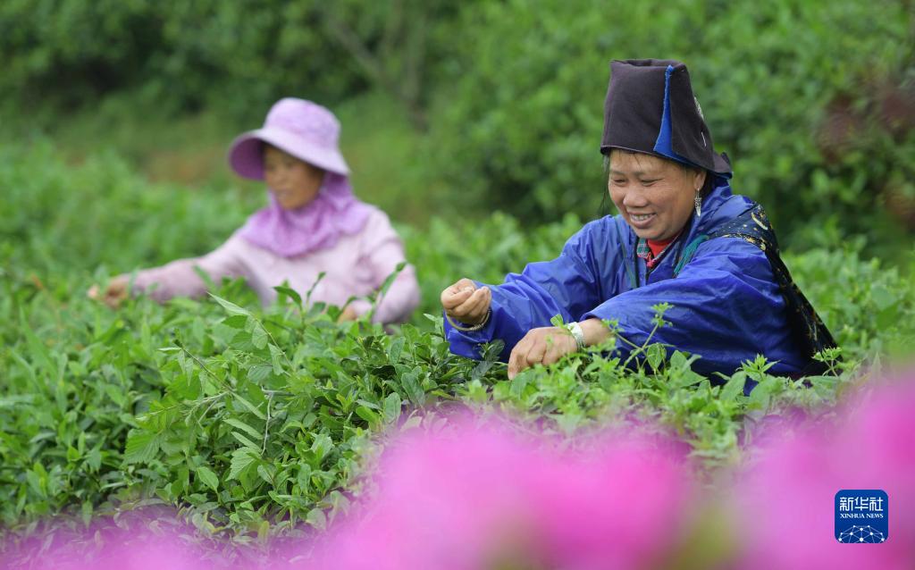 4月24日,村民在丹寨县龙泉镇马寨茶园采茶。