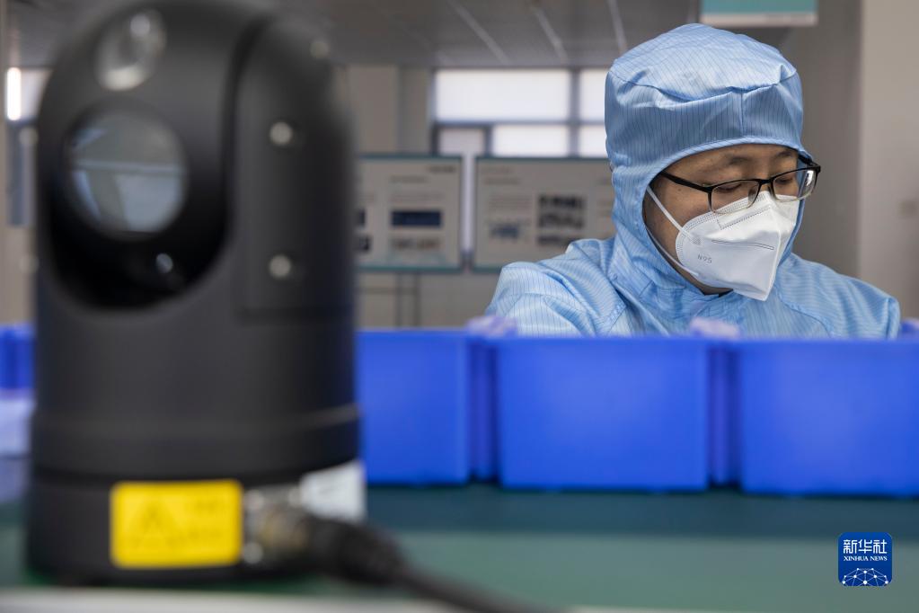 4月24日,在哈尔滨海邻科信息技术有限公司生产车间,工作人员在进行生产作业。