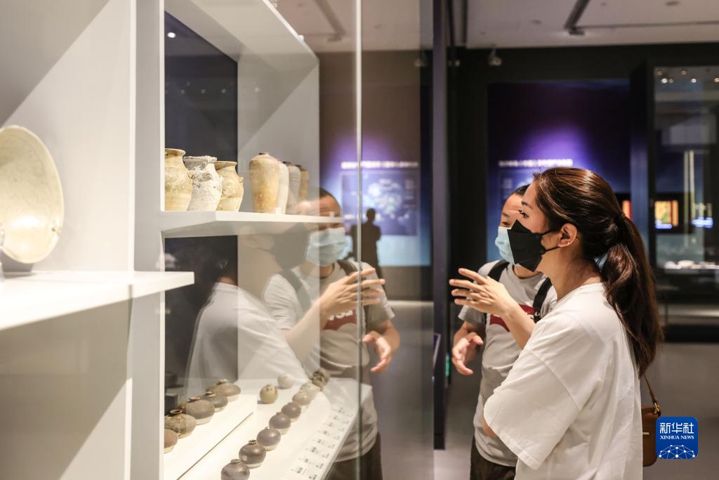 4月24日,游客在海南省博物馆里参观“南溟奇甸”南海海洋文明陈列展。