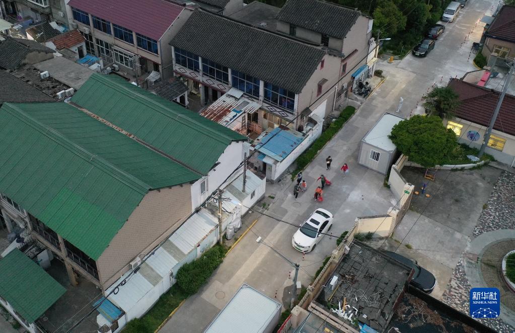 4月24日,陆续返回的村民进入村子(无人机照片)。