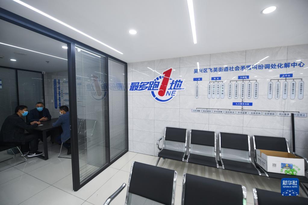 4月28日,在飞英街道社会矛盾纠纷调处化解中心的调解室,工作人员在调解处理一起社区居民欠款纠纷。新华社记者 徐昱 摄