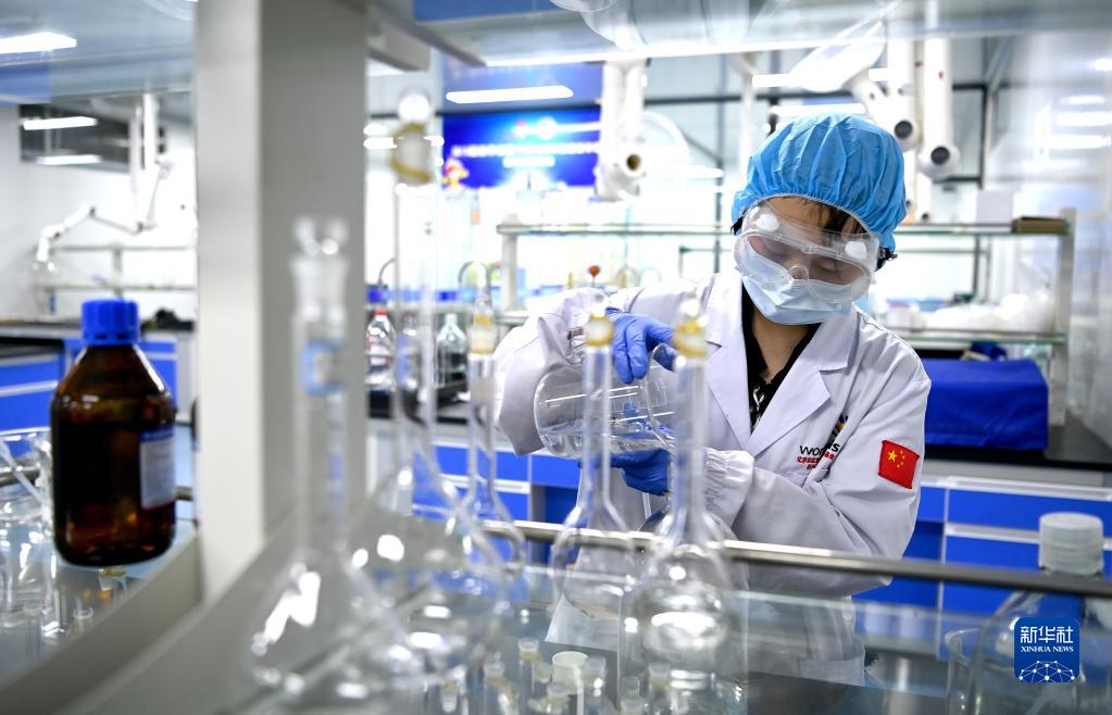 西安石油化工技工学校化工工艺专业学生吴娜娜,在备战世界技能大赛化学实验室技术项目(4月26日摄)。