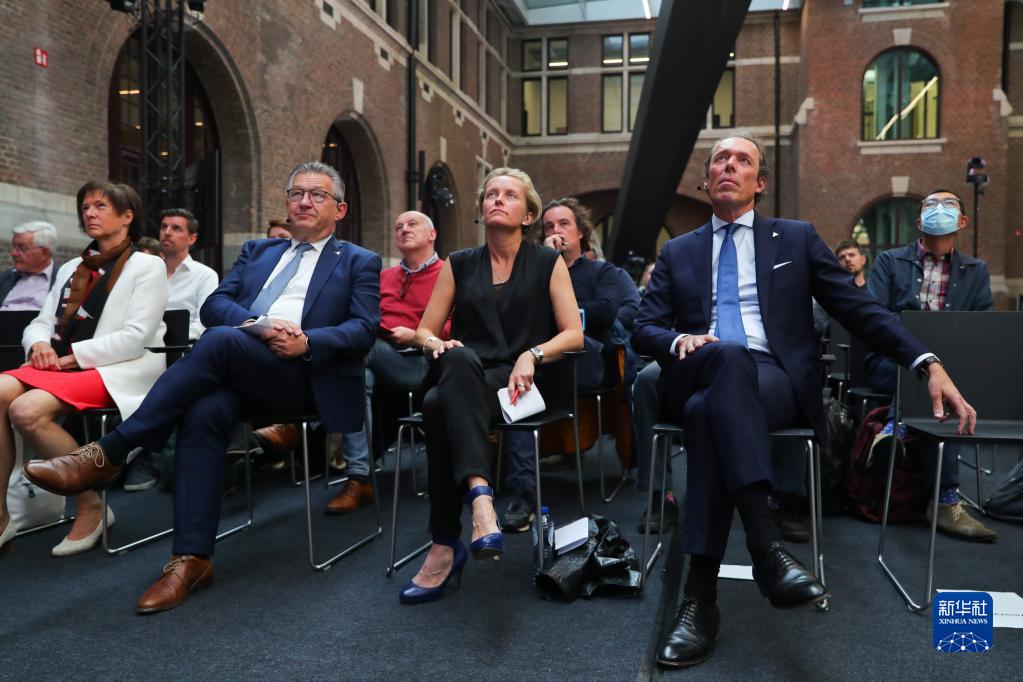 4月28日,在比利时安特卫普,安特卫普市副市长兼安特卫普-布鲁日港董事长安妮克·德里德(前排右二),布鲁日市长兼安特卫普-布鲁日港副董事长迪尔克·德福(前排左二)和安特卫普-布鲁日港首席执行官雅克·范德梅伦(前排右一)出席安特卫普港和泽布吕赫港合并仪式。