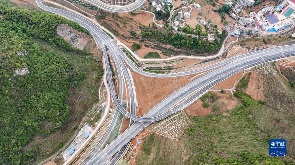 这是镇赫高速公路古基互通(4月21日摄,无人机照片)。