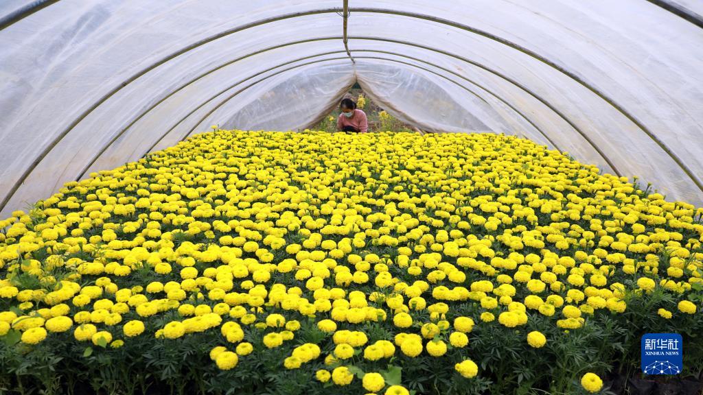 4月29日,在石家庄市藁城区南董镇南洼村一处花卉苗木基地,工作人员在整理花卉。