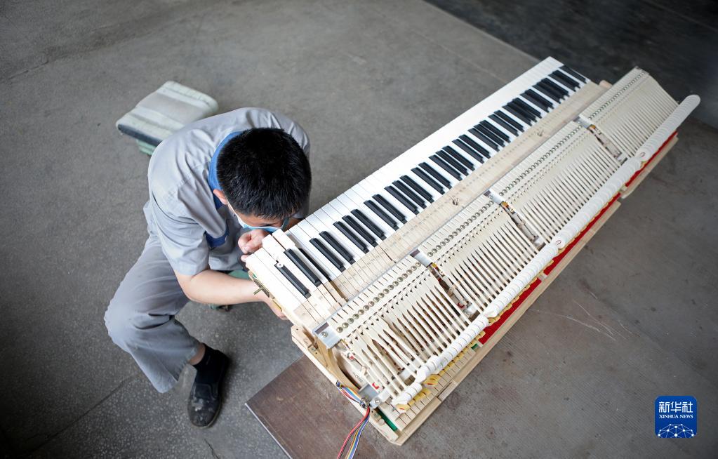 4月26日,刘玉磊在车间内装配钢琴部件。新华社记者 王乙杰 摄