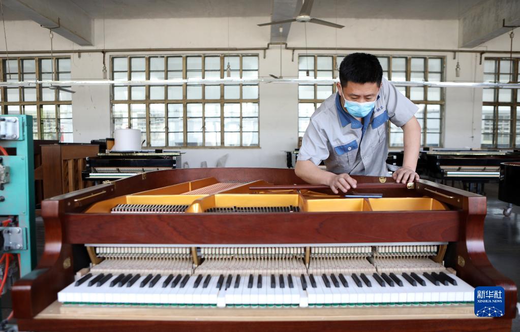 4月26日,刘玉磊在车间内测试钢琴自动演奏系统。新华社记者 王乙杰 摄