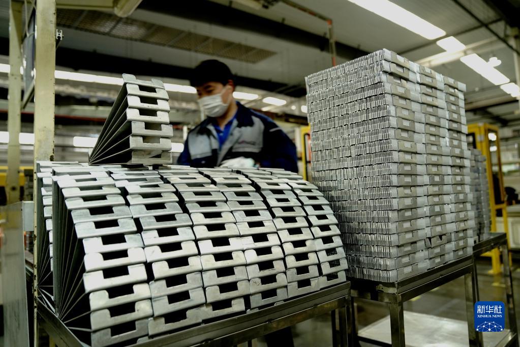 4月29日,上海加冷松芝汽车空调股份有限公司工人在生产车间忙碌。