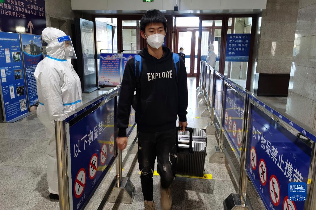 4月30日,旅客进入长春火车站。