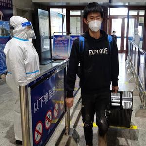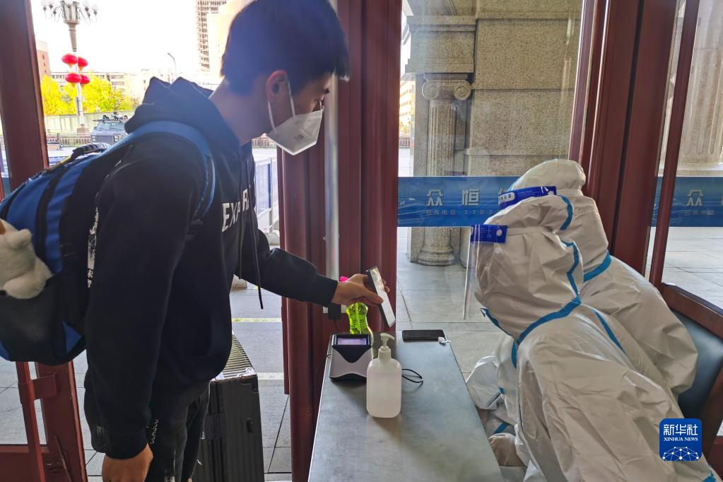 4月30日,在长春火车站,旅客向工作人员出示健康码。