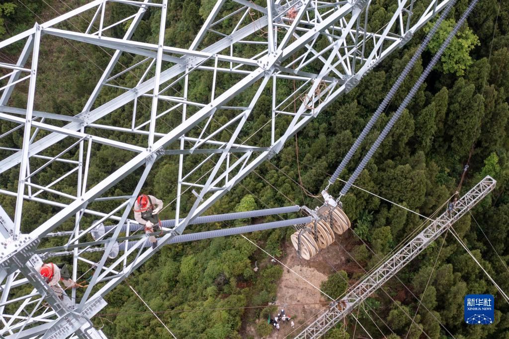 目前,正值两条特高压直流输电线路——±800千伏白江线、白浙线在重庆境内的建设高峰期。为了保障特高压线路架设的顺利进行,从4月27日开始,高空作业人员每天坚守在百米高空的电力铁塔上,进行线路架设期间的各项安装工作。