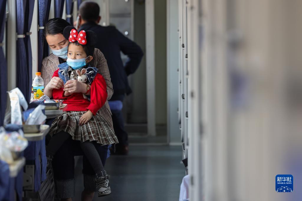 在开往和田方向的“和田玉龙号”列车上,乘客在车厢内休息(4月27日摄)。