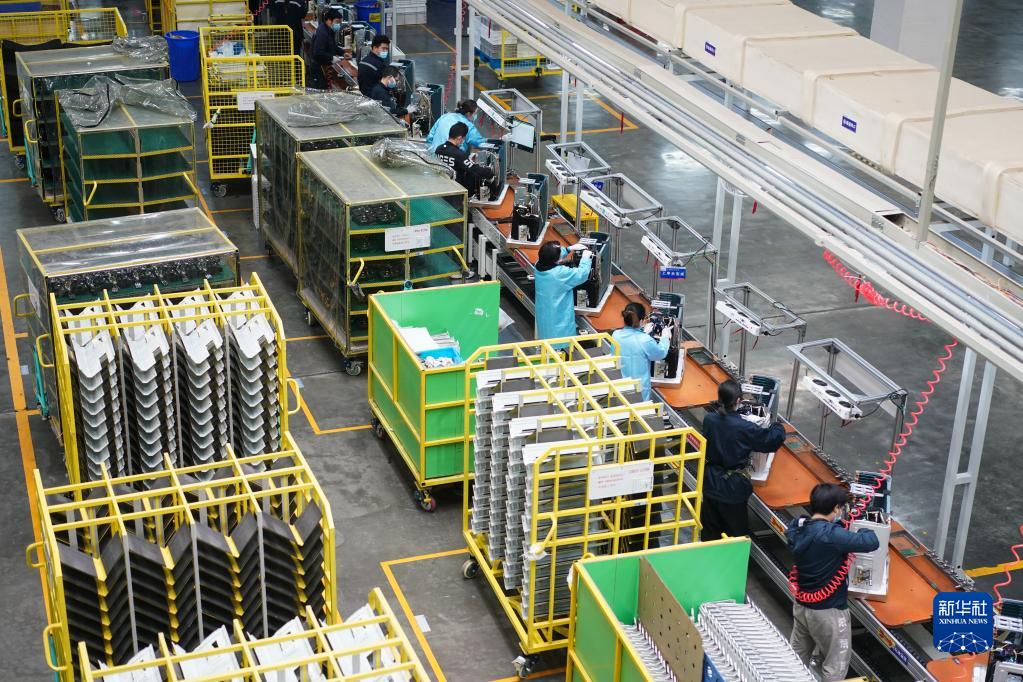 在格力电器(南京)有限公司,员工在生产车间忙碌(4月2日摄)。