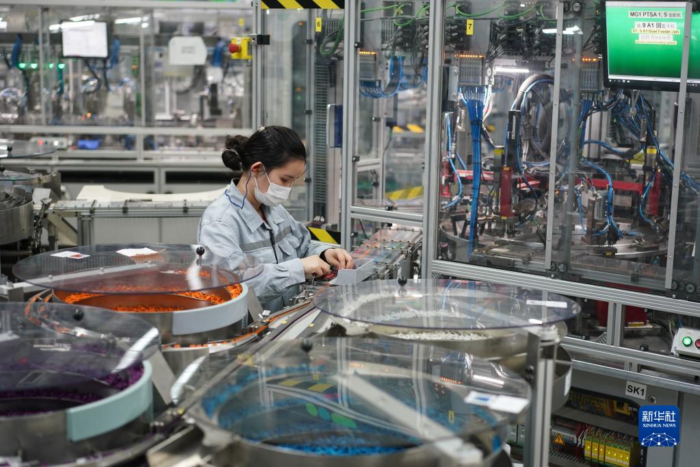 工作人员在位于江宁开发区的菲尼克斯电气中国公司车间忙碌(4月2日摄)。