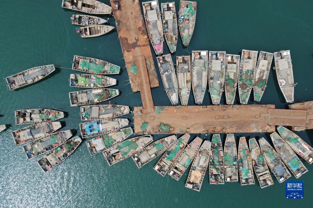 4月30日,返港休渔的渔船停泊在山东烟台芝罘岛东口渔港(无人机照片)。