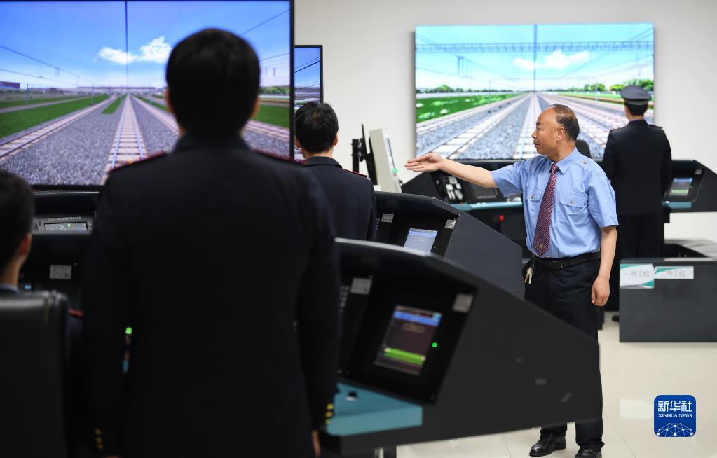 4月29日,在西安铁路职业技术学院,老师薛振洲在课堂上指导学生进行动车组驾驶与运用实训演练。