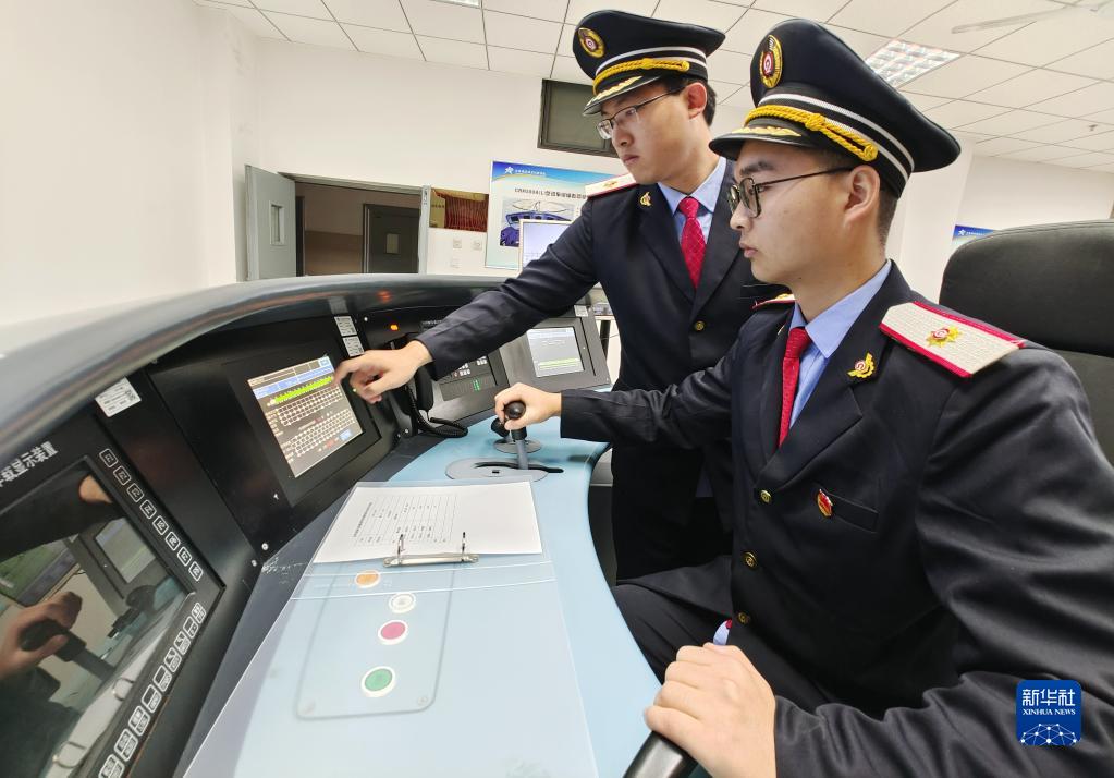 4月29日,在西安铁路职业技术学院,学生在课堂上进行动车组驾驶与运用实训演练。