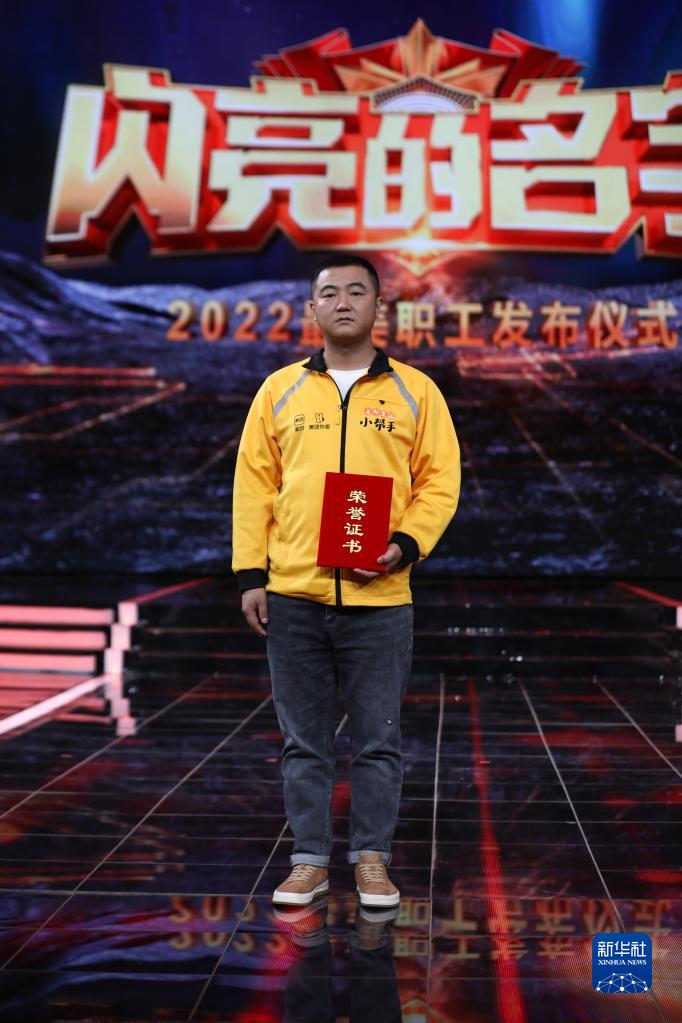 黑龙江省鹤岗市南山区准时达代送物品服务店经理张硕在“最美职工”发布仪式上(4月21日摄)。