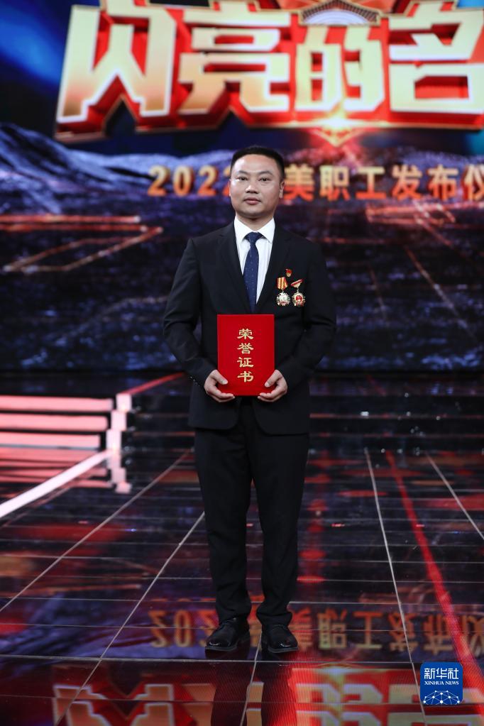 湖南省个体货运司机龙兵在“最美职工”发布仪式上(4月21日摄)。