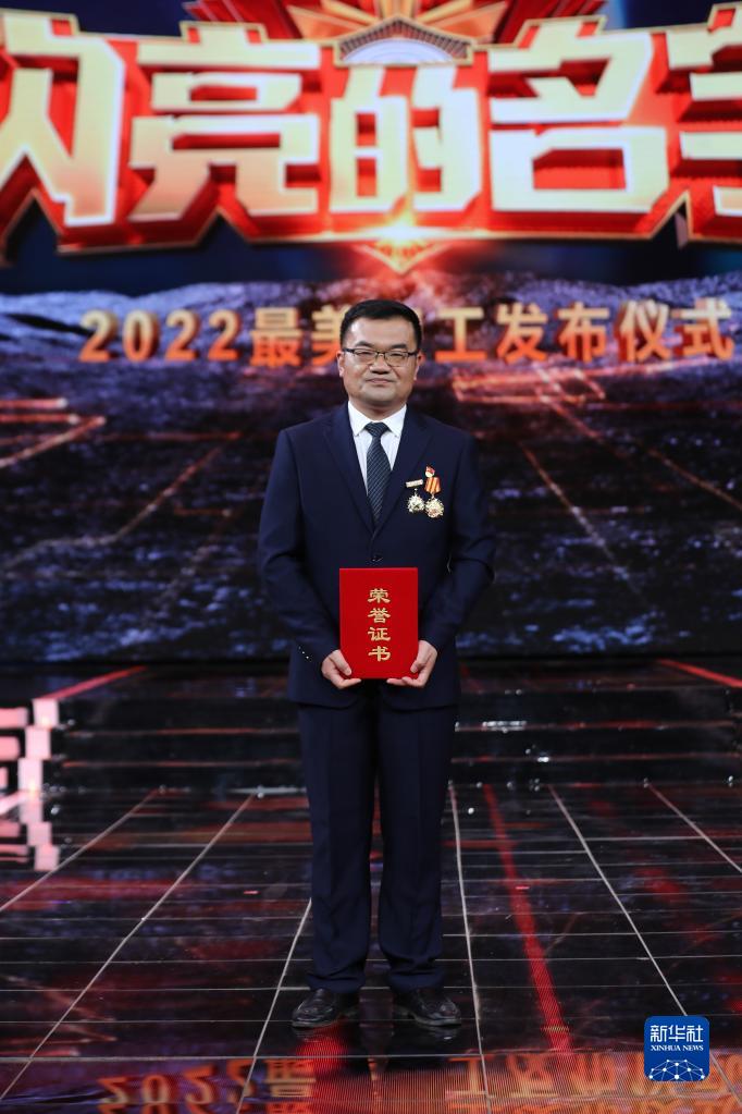 山东菏泽黄河河务局供水局郓城供水处高级技师、首席技师亓传周在“最美职工”发布仪式上(4月21日摄)。