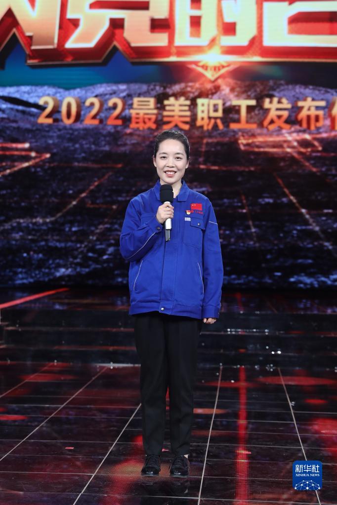 南京三乐集团有限公司宇航产品室主任、工程师成红霞在“最美职工”发布仪式上(4月22日摄)。