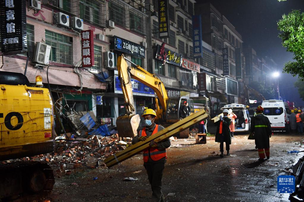 4月30日,救援人员在湖南长沙居民自建房倒塌事故现场进行救援。