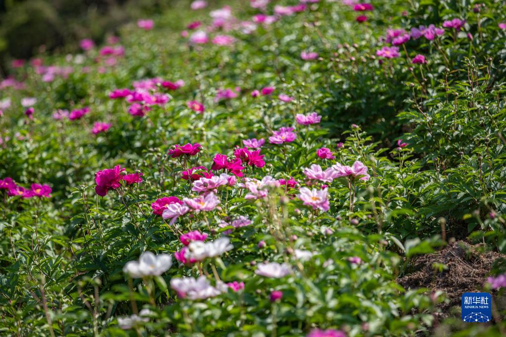 这是4月10日拍摄的重庆市开州区五通乡桐林村种植的中药材芍药。