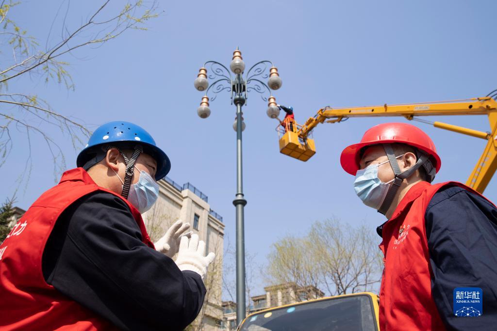4月29日,在哈尔滨市松北区,梅宏刚(右)协调分队进行故障处理。