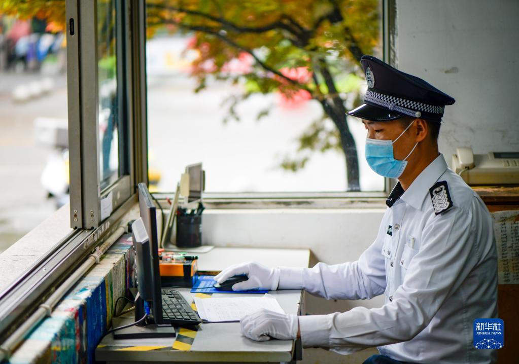4月30日,李小刚在龙湖水晶郦城颐苑居民小区正门的值班室内工作。