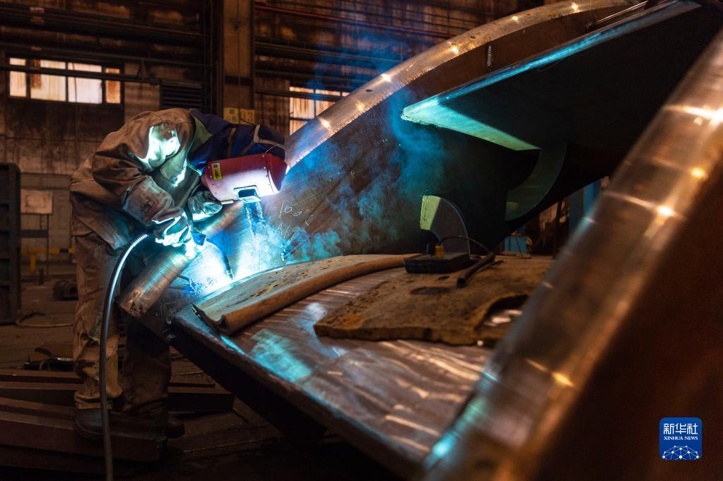 5月1日,工人在哈电集团哈尔滨电机厂有限责任公司冷作分厂生产车间作业。