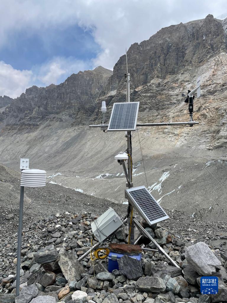 这是在珠峰地区海拔5800米左右位置架设的自动气象站(4月29日摄)。