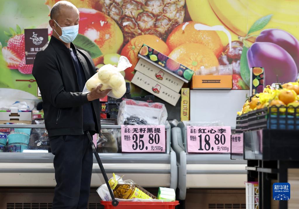 5月1日,顾客在上海市金山区张堰镇一超市内购物。