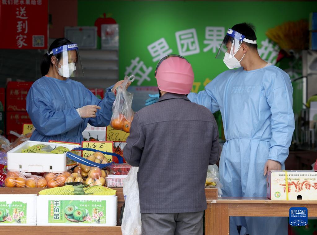5月1日,顾客在上海市金山区张堰镇一水果店购物。