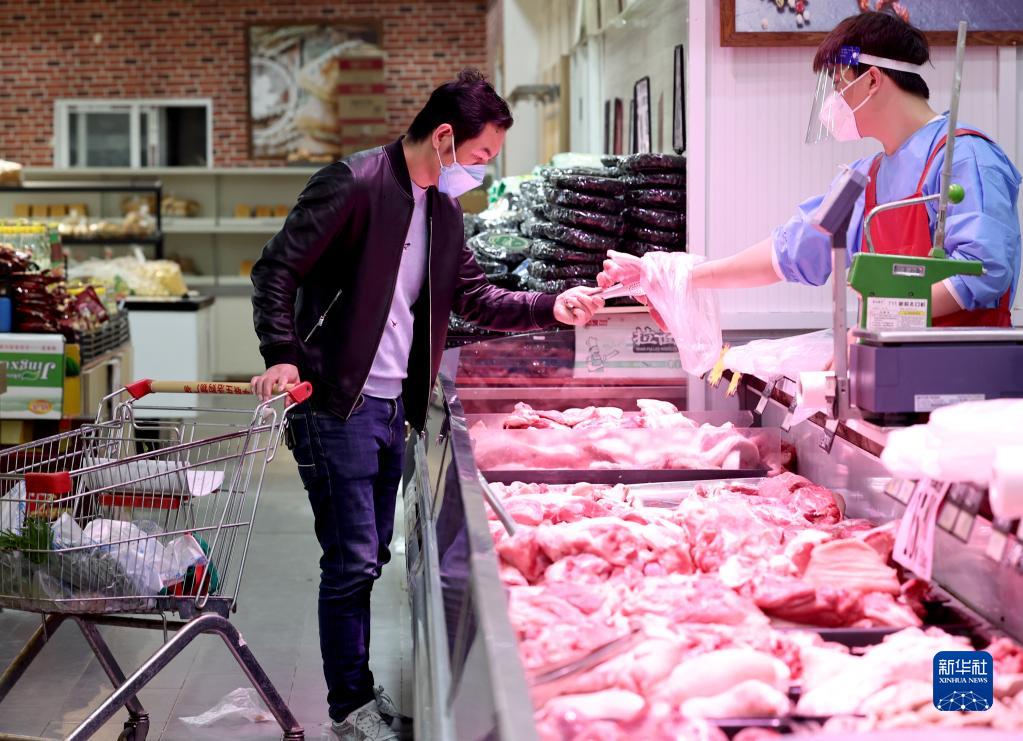 5月1日,顾客在上海市金山区张堰镇一超市内购物。