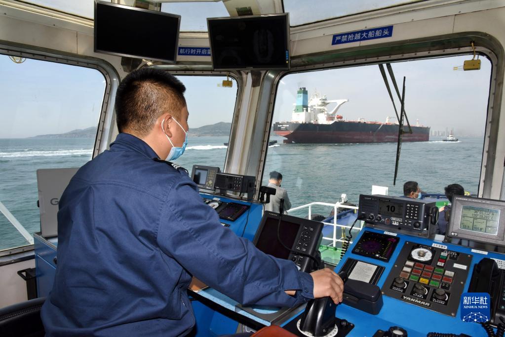 “五一”假期期间,山东港口青岛港原油码头船舶作业高效有序,协助油轮进出港口的拖轮在海上24小时坚守,原油到岸接卸呈现一派繁忙景象。