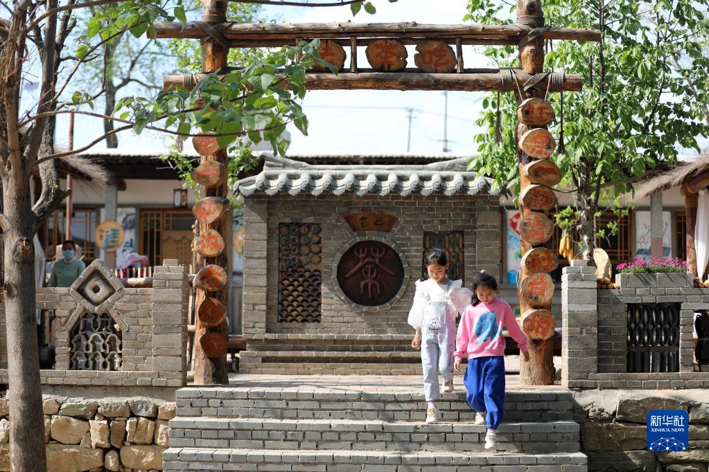 5月1日,小朋友在石家庄市行唐县东寺渔村旅游景区特色茶馆游玩。新华社记者 骆学峰 摄