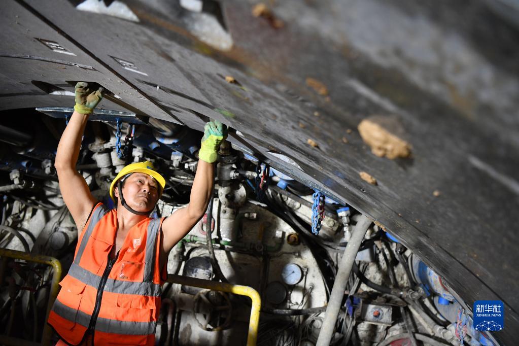 5月2日,在郑州轨道交通6号线一期工程东北段项目施工现场,中建七局交通公司的工人在组装隧道管片固定螺栓。