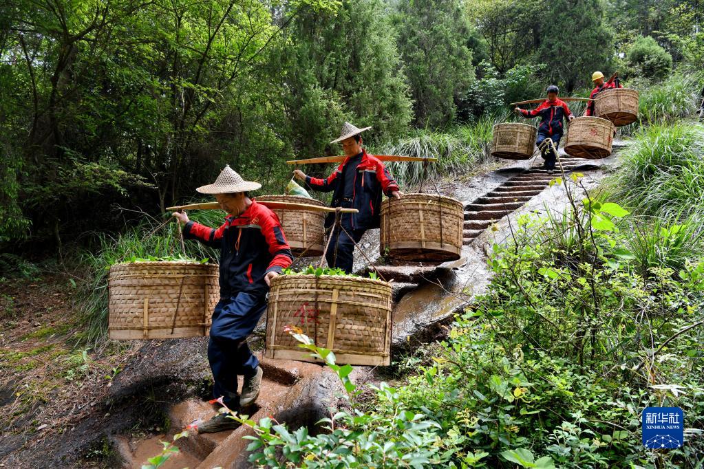 5月2日,福建省武夷山市茶农将茶青挑下山。