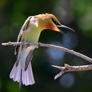 5月3日,两只栗喉蜂虎在枝头上鸣叫。